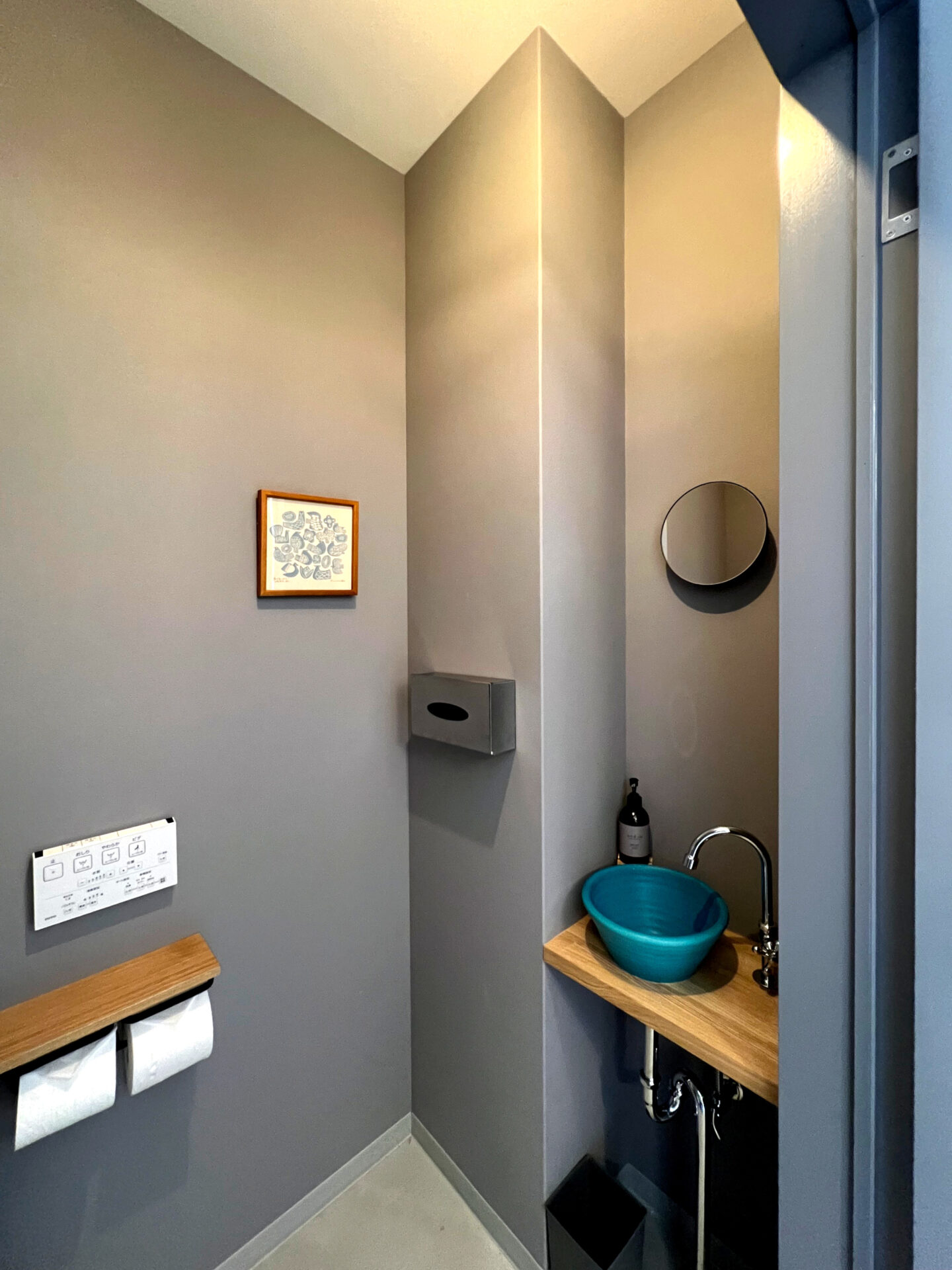 既設を生かしたシンプルな空間に、特徴的なペンダントライトをアクセントとしています。
