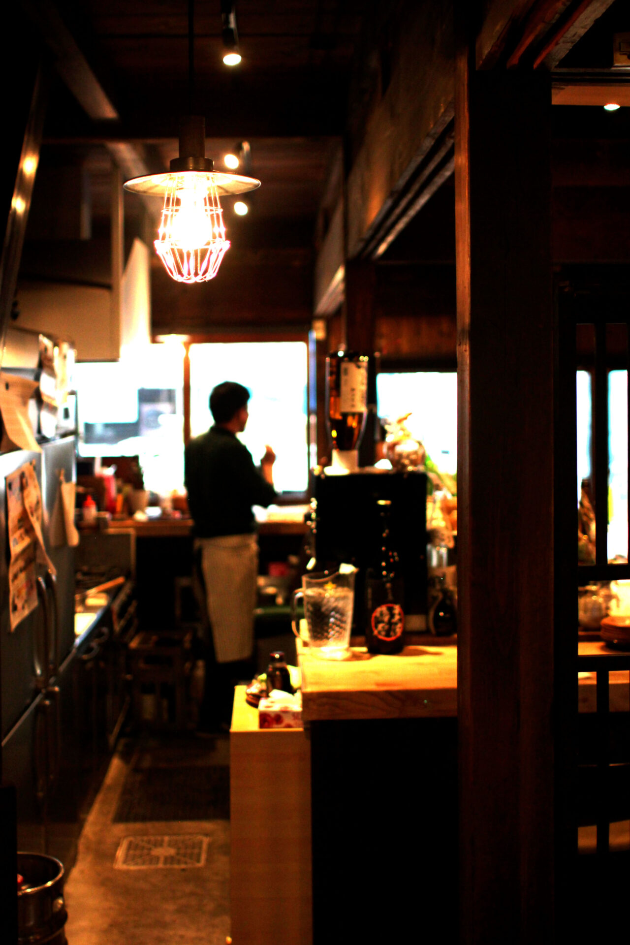 外から歩いてくると、電球色の温かい明りが灯り、思わずふらりと立ち寄りたくなるような、活気溢れる居酒屋さんとなりました。